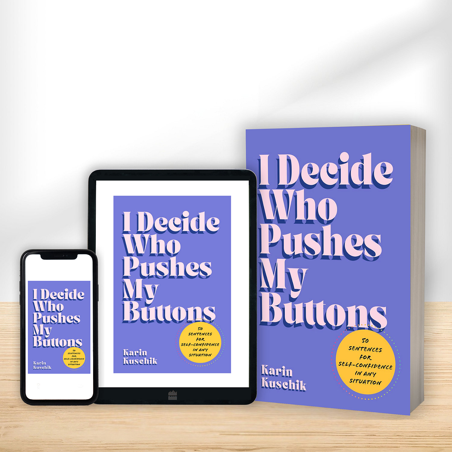 WER MICH ÄRGERT, BESTIMME IMMER NOCH ICH direkt aufs Cover zu knallen, gefällt mir richtig gut. War sogar meine Idee – aus purer Not. Denn der amerikanische Vorschlag drehte sich um „inner peace“ – das fand ich eher irreführend. Ein großartiges Beispiel für: Nicht gleich durchdrehen, wenn es anders läuft, als wir es gerne hätten, oder? Denn oft genug wird eine Idee dadurch sogar noch besser. Ein empörtes „Waaas?“ kann genau den Energieschub liefern, den wir für eine kreative Lösung brauchen.